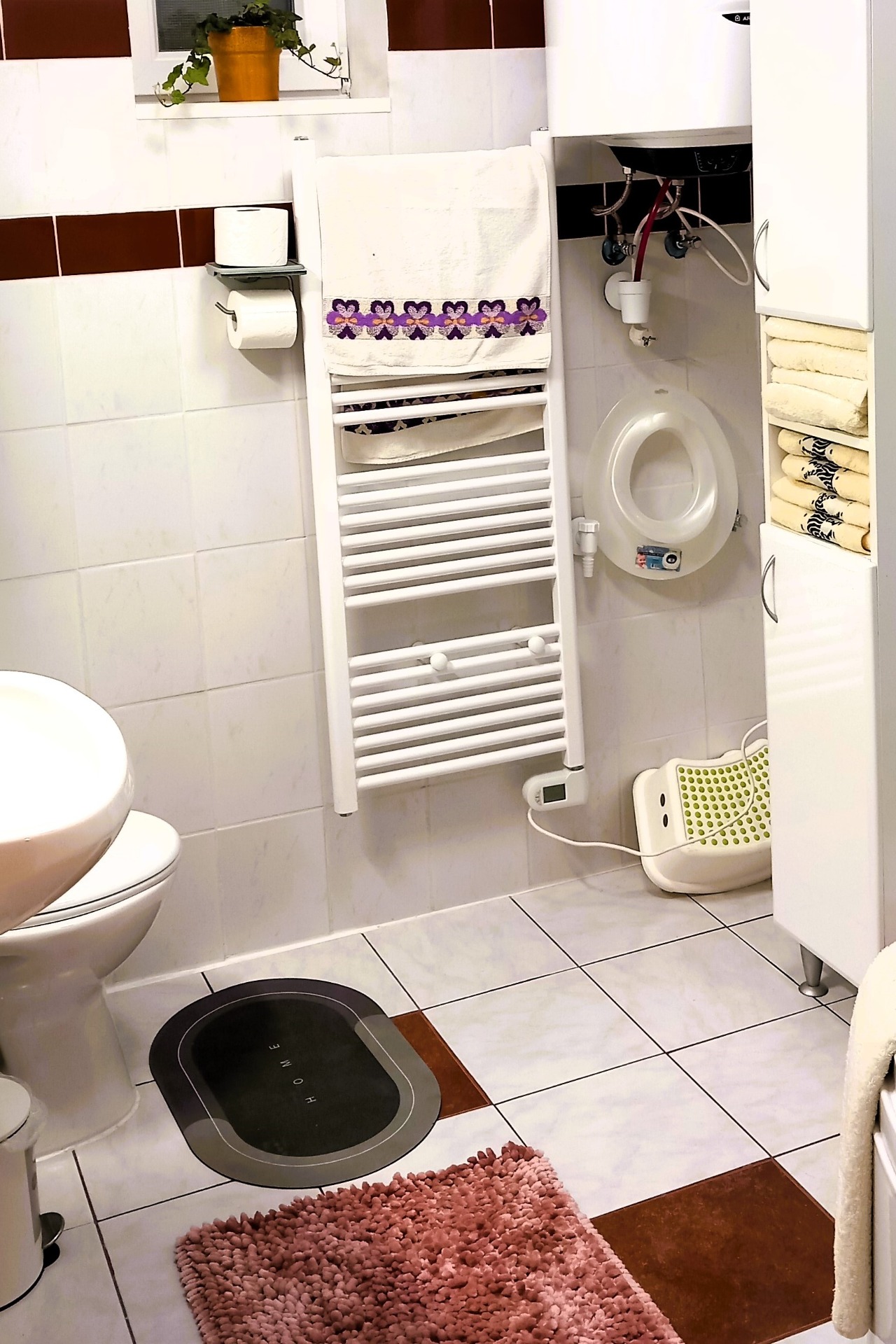 Az újonnan kialakított fürdőszoba modern és gyermekbarát kialakítású.